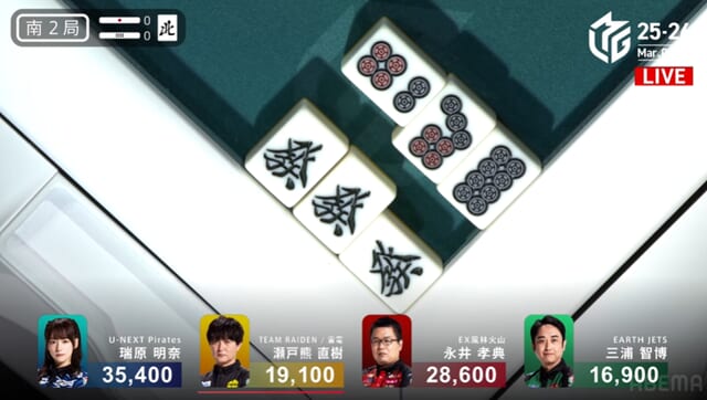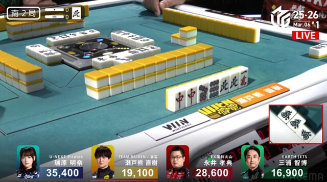 南2局の瀬戸熊さんのリャンメンチーは大丈夫かなと思った。もちろん、ホンイツや高打点に対する読みを外そうとしたことや、上家の瑞原さんから