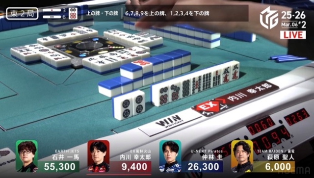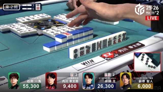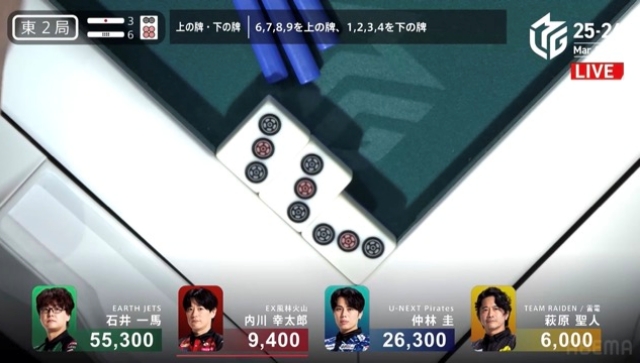 供託3本、6本場で4,800もの懸賞が乗っている今局、親権維持を目論む内川が中盤にポンテンを入れた。