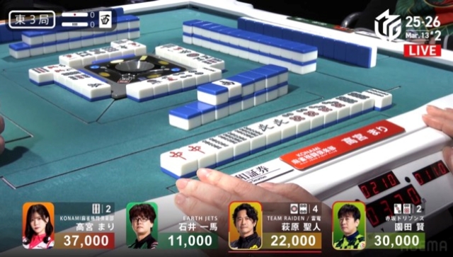 両者に1枚もツモらせることなくこの局を引き取った高宮。