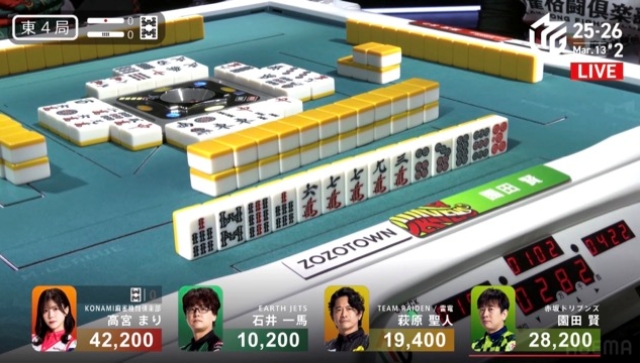を切ってテンパイこぎつけた園田。