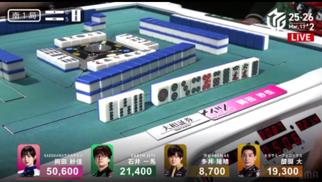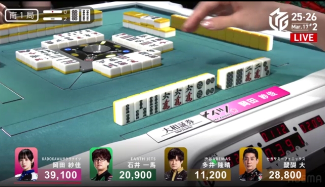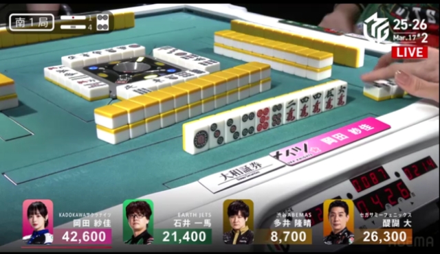 東家:岡田紗佳(KADOKAWAサクラナイツ)