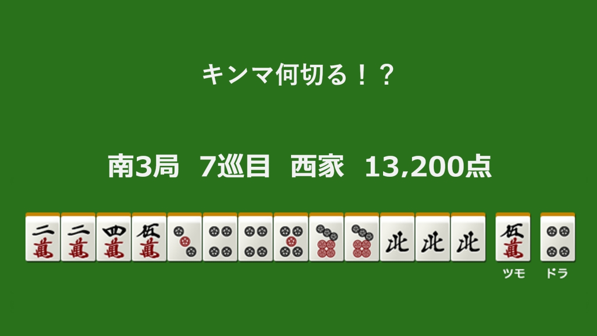 何切る?(麻雀何切る問題)2026.03.22 キンマweb編集部 キンマ何切る!? 【3月22日】 南3局 7巡目 西家 13,200点 キンマ何切る!? 【3月22日】 二萬 四萬 五萬 3筒 4筒 5筒 7筒 北 結果を見る Loading ... フォロー この記事が気に入ったら フォローをお願いいたします! 最新の麻雀・Mリーグ情報をお届けします! \近代麻雀「何切る」問題におすすめの本!/ ツイート LINE