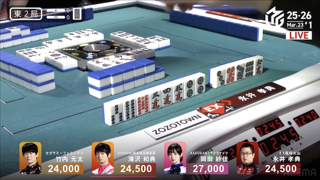 東2局、永井が最終的に345の三色、カン