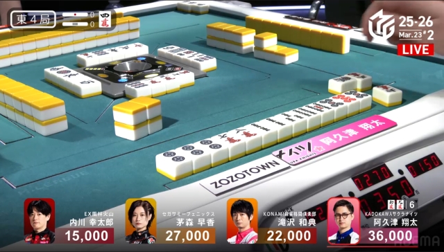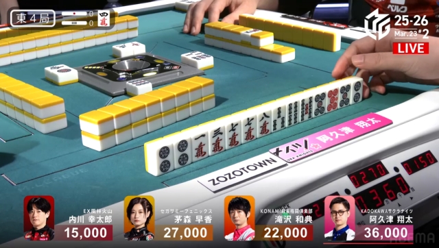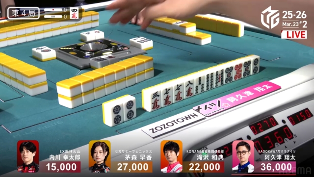 当の阿久津本人も即リーチを打つ方の人間ではあったが、昨今の研究を基に外す余裕も十分にあると踏んでのこの進行。