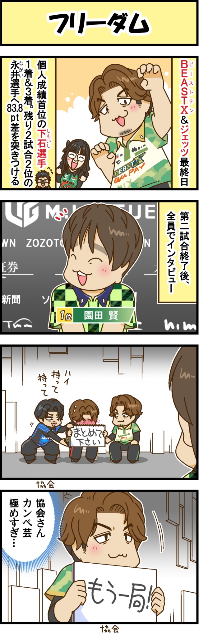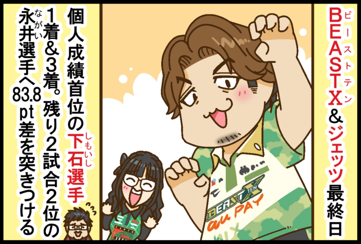 【Mリーグ2025-26】下石戟選手、BEAST&JETS最終日に、永井孝典選手を1着・3着で引き離す!【Mリーグほぼ毎日4コマ】藤島じゅん/VOL.1071