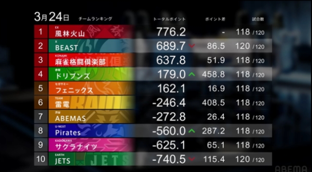 そして、史上初めて1000Pに到達したチームである赤坂ドリブンズが、昨年の雪辱を果たすべく、セガサミーフェニックスを抜いて4位にランクアップ。