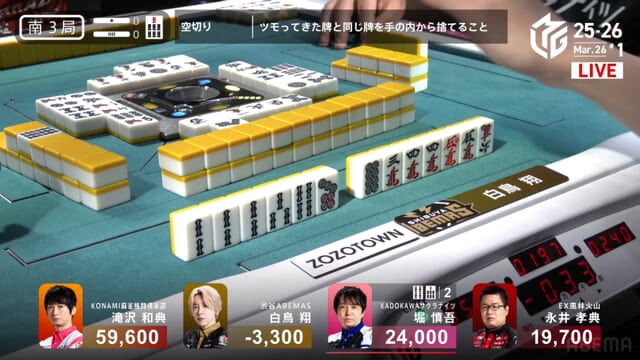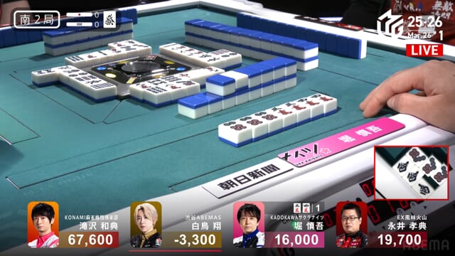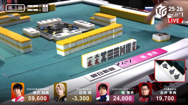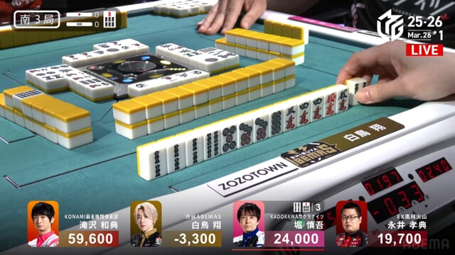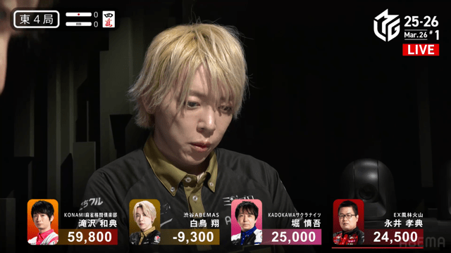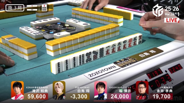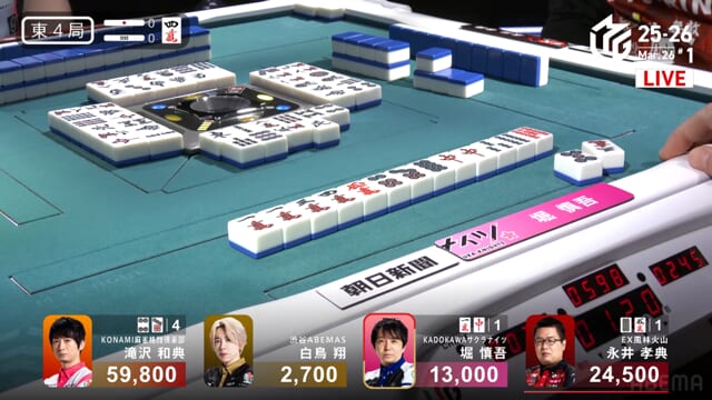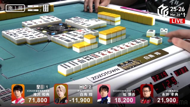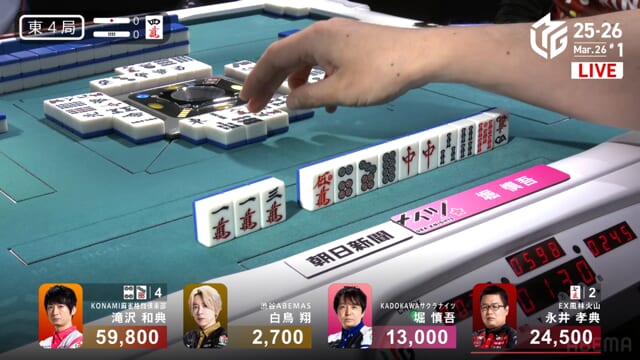 白鳥or堀の和了で親被りをしてしまうと、ライバルKONAMIに