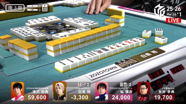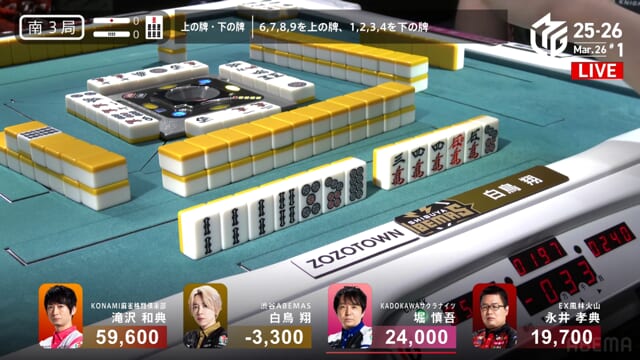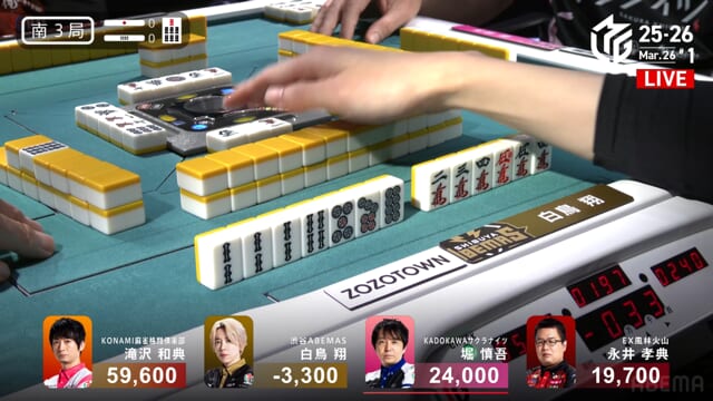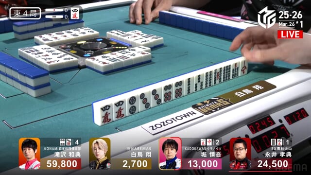 ・・・が、堀が滝沢から8000の和了で白鳥、最後の親が流れてしまう。