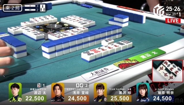 供託を奪われたくないのは黒沢も同様で、イーシャンテンから放った【7ピン】が太に捕まり、2000点。