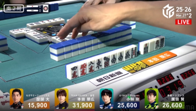 普段の本田であれば、迷うことなく立ち向かって攻めていくだろうが、万が一の放銃も起こさない打牌を続けた。これまで幾度となく目の当たりにしてきた「やんちゃ」なスタイルからは想像もつかない光景だが、ユニバースの方々からすれば、これほど安心できる打ち回しもないだろう。