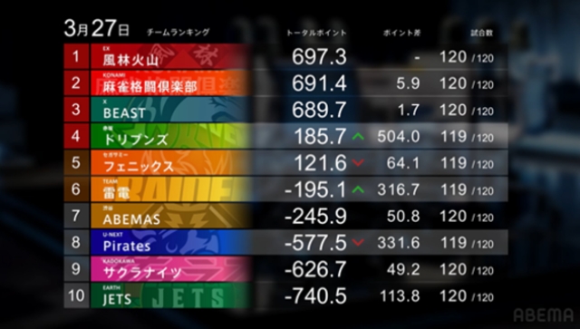 3月27日のMリーグ第二試合。