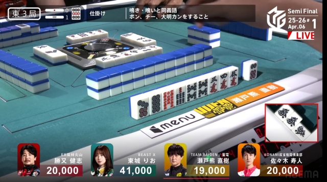 西家:瀬戸熊直樹(TEAM RAIDEN / 雷電)
