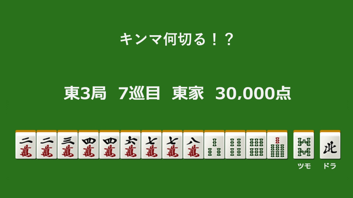 何切る?(麻雀何切る問題)2026.04.08 キンマweb編集部 キンマ何切る!? 【4月8日】 東3局 7巡目 東家 30,000点 キンマ何切る!? 【4月8日】 二萬 三萬 四萬 六萬 七萬 八萬 3索 4索 6索 7索 8索 結果を見る Loading ... フォロー この記事が気に入ったら フォローをお願いいたします! 最新の麻雀・Mリーグ情報をお届けします! \近代麻雀「何切る」問題におすすめの本!/ ツイート LINE