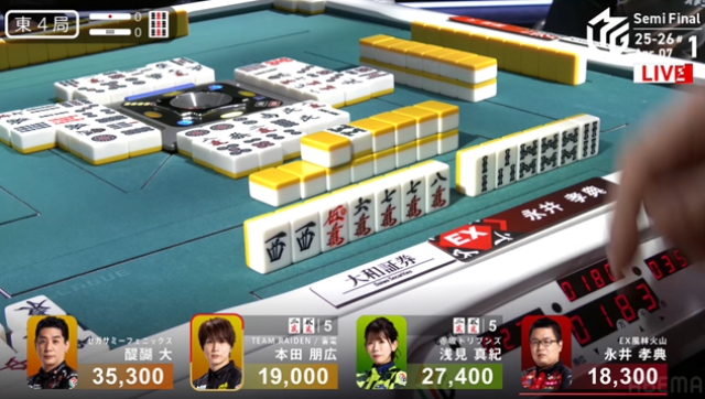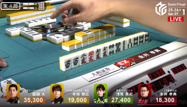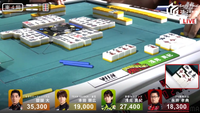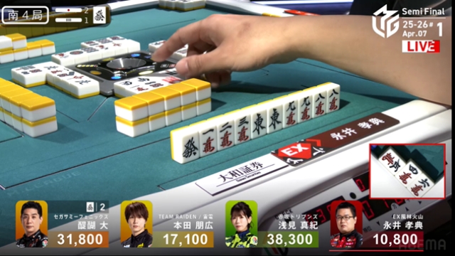 東4局を親番で迎えた永井は選択を迫られる。浅見が