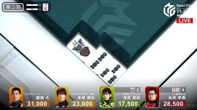 東2局、8巡目に浅見・永井からリーチが入る。醍醐の
