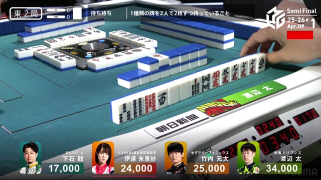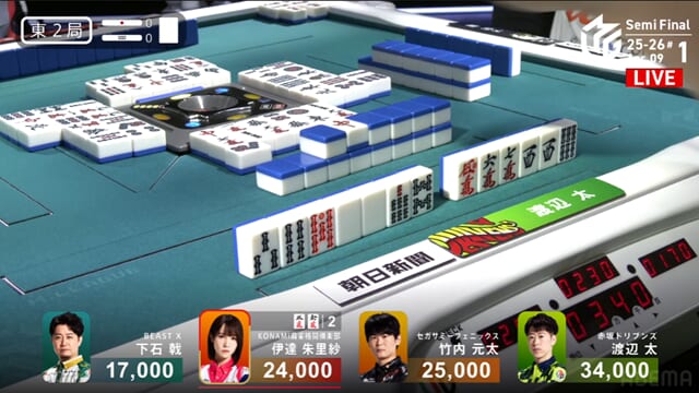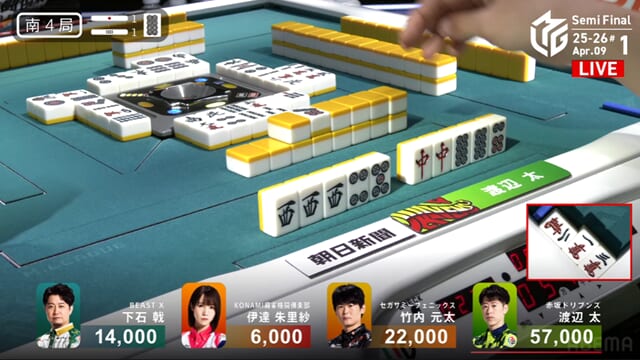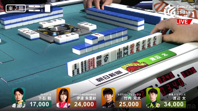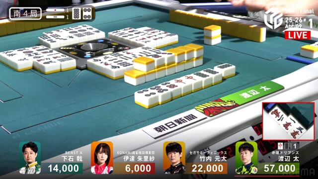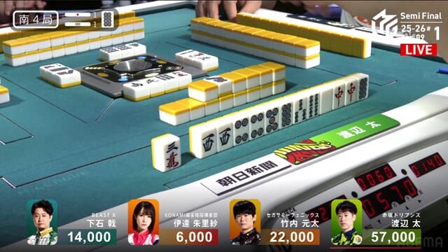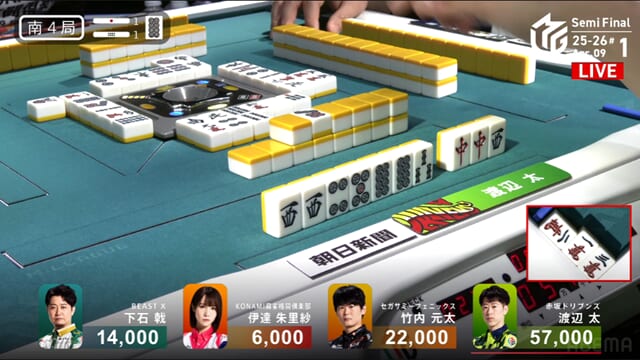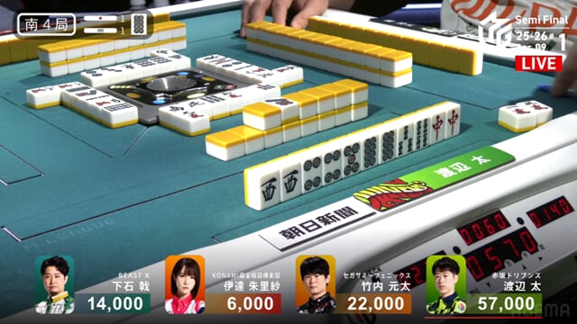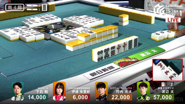 東1局に続く大きなアガリで、太が試合の主導権を完全に握った。