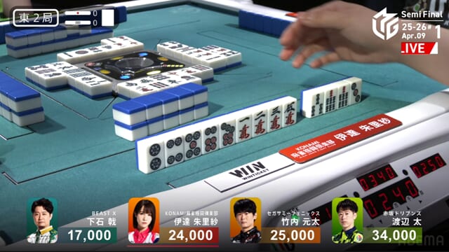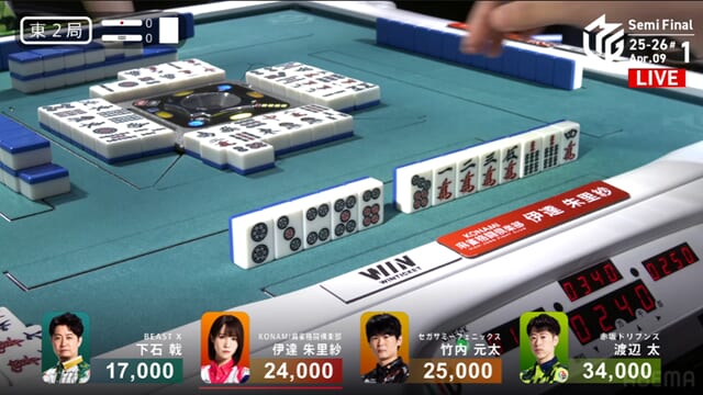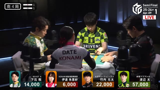 下石は最高スコア賞の名に恥じない鋭い押し引きを随所に見せたが、東1局の満貫放銃が最後まで響き、追撃の流れをつかみきれなかった。