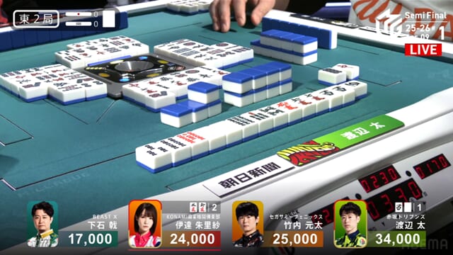 一方の伊達は、行くべき局面でロン牌を引かされる不運も重なり苦しい展開。
