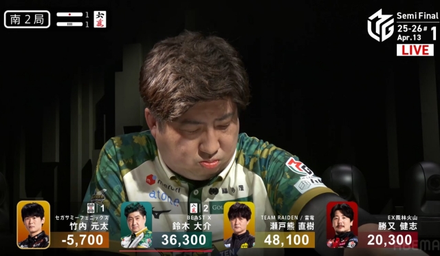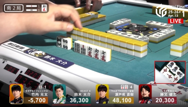 2600オールのアガリで、なんと再び瀬戸熊を逆転。