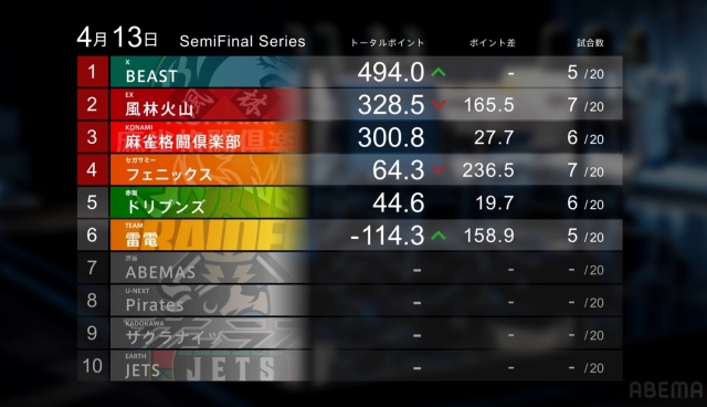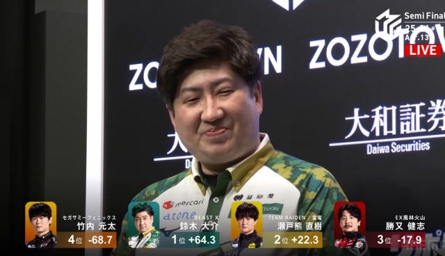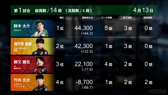 大介の攻撃的な麻雀がBEASTX悲願の初優勝を手繰り寄せるのか、注目したい。