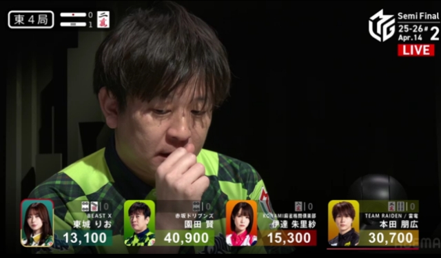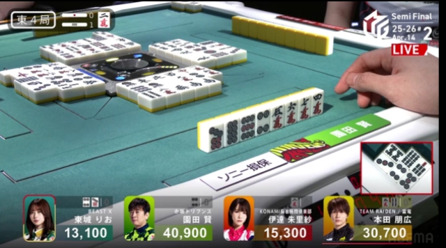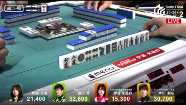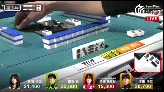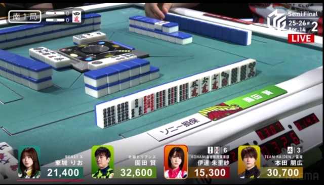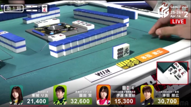 本田、そのままリーチ裏1に放銃して2600点の失点。