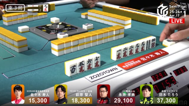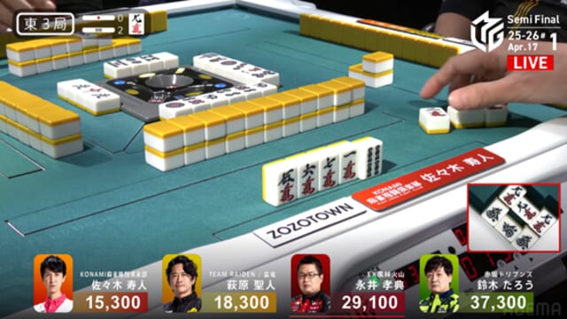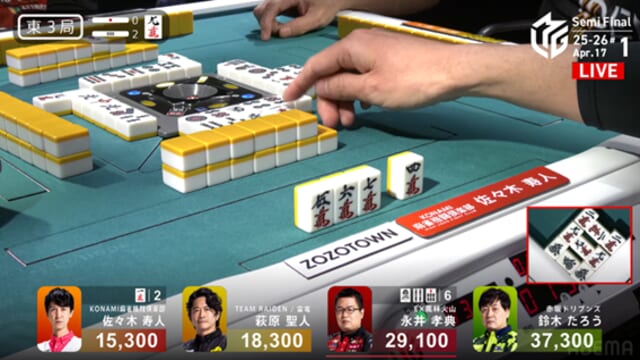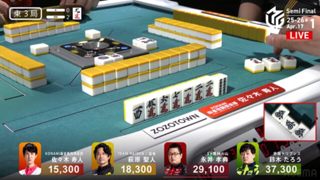 東家:佐々木寿人(KONAMI麻雀格闘倶楽部)