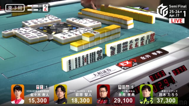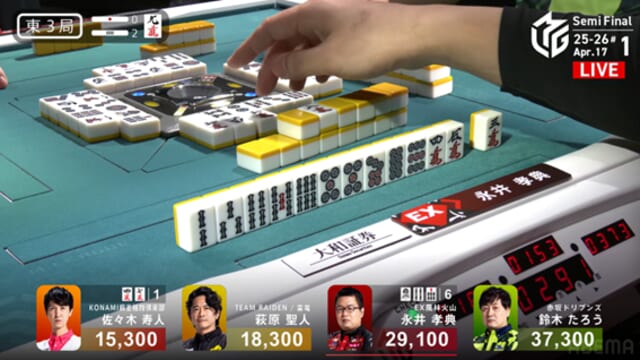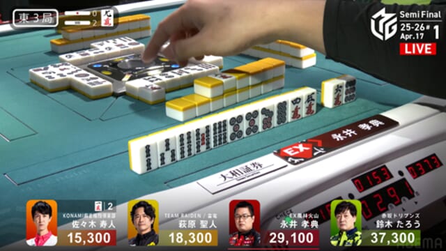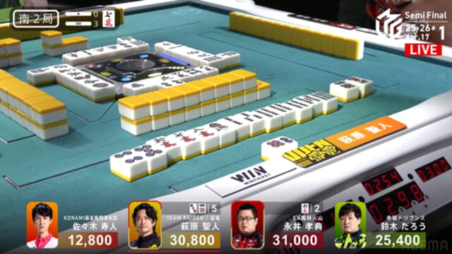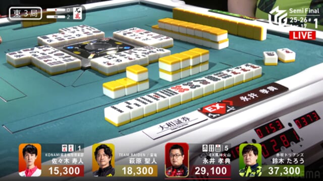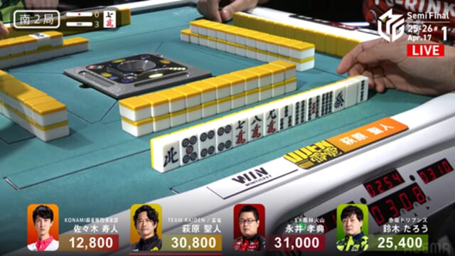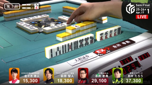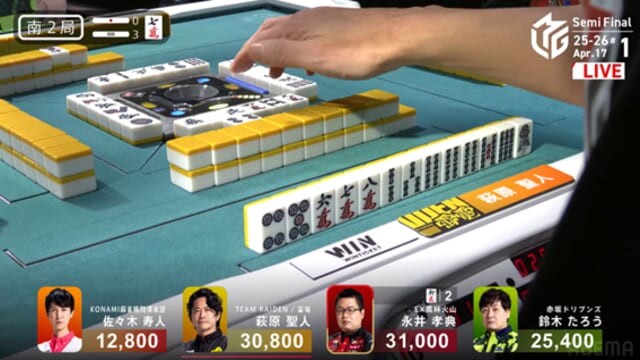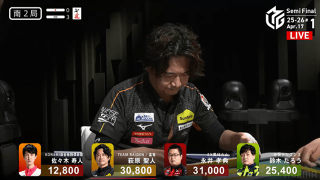 そしてこれを一発ツモ。永井が突き抜けるかと思われた流れを、泥臭く、そして強引に引き寄せた。これで萩原がトップ目に立った。