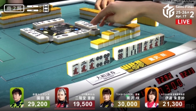 ピンフのテンパイを入れた黒沢が先制リーチ。