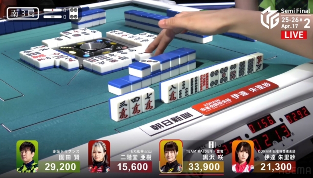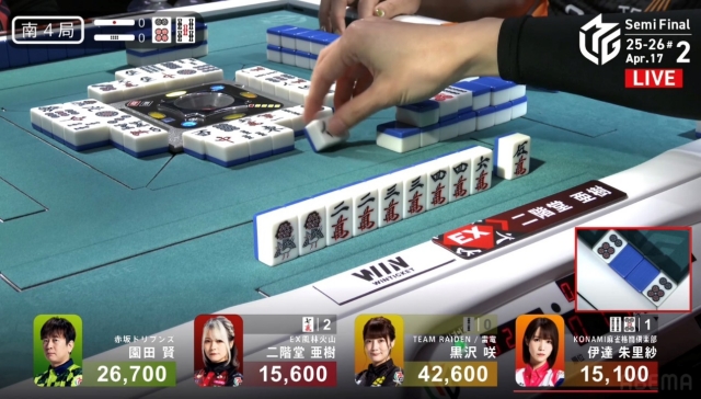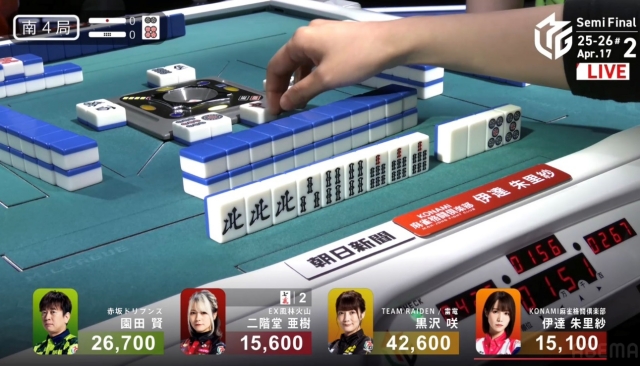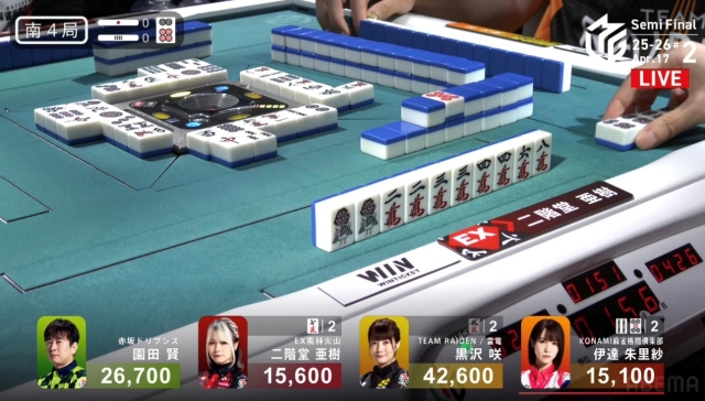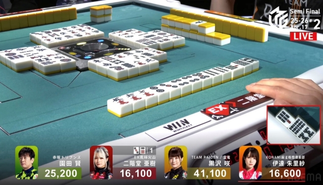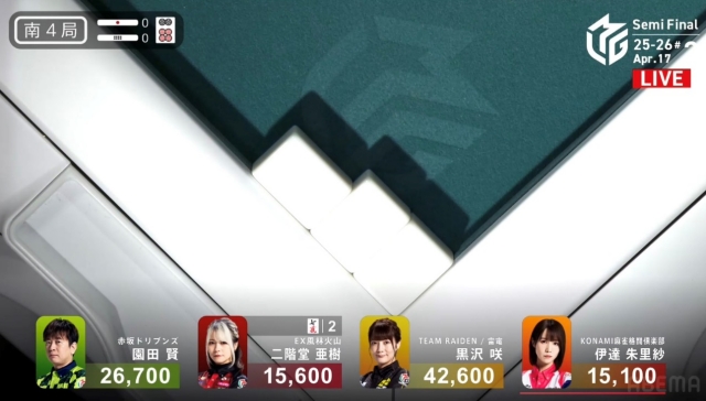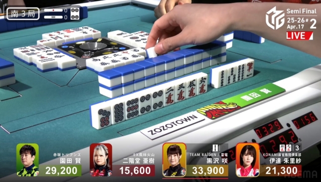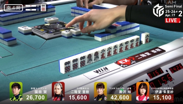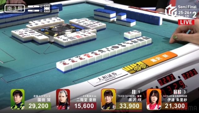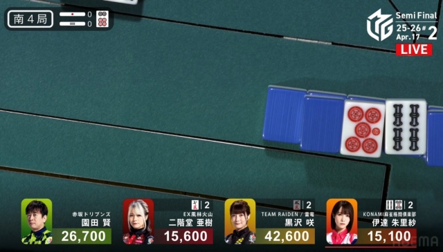 続く1本場は、亜樹が3着確保のアガリを決めて、試合は終了。