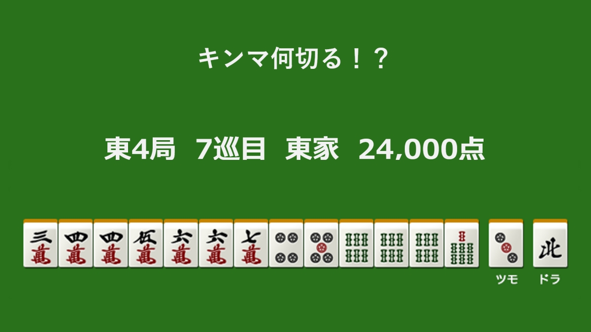 何切る?(麻雀何切る問題)2026.04.20 キンマweb編集部 キンマ何切る!? 【4月20日】 東4局 7巡目 東家 24,000点 キンマ何切る!? 【4月20日】 三萬 四萬 五萬 六萬 七萬 4筒 5筒 6索 7索 3筒 結果を見る Loading ... フォロー この記事が気に入ったら フォローをお願いいたします! 最新の麻雀・Mリーグ情報をお届けします! \近代麻雀「何切る」問題におすすめの本!/ ツイート LINE