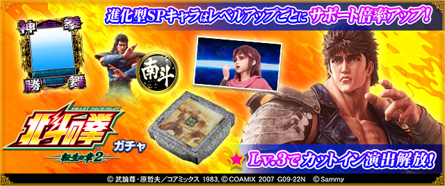 「ケンシロウ 転生の章2」「ラオウ 転生の章2」など、全5種の進化型SPキャラ(SSR)が登場します。