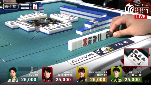 一方、トップ目の下石、2巡目にして両面両面のイーシャンテン。