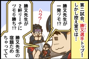 しかし南2局1本場、2フーロしてテンパイの本田に、元太のリーチが襲い掛かる。これに本田が捕まってピンフ・ドラ1・ウラ1の8000点。本田のリードを粉砕する。