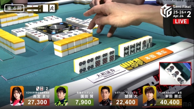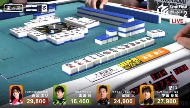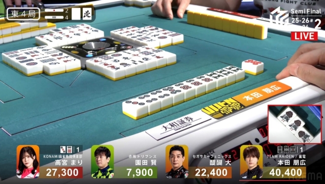 形式テンパイを復活させた本田は、流局を願うのみ。