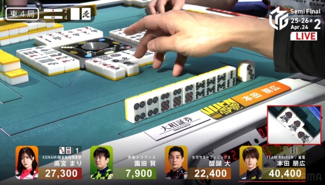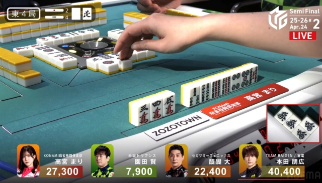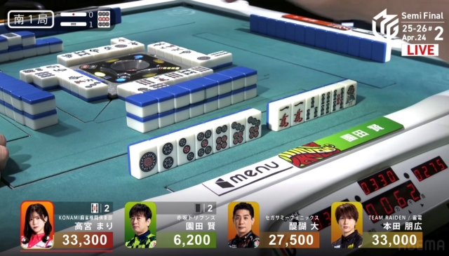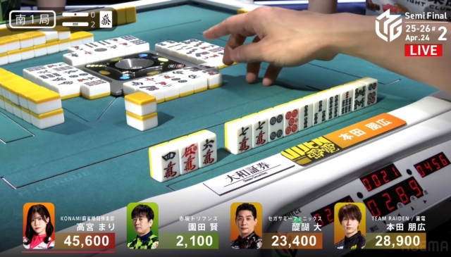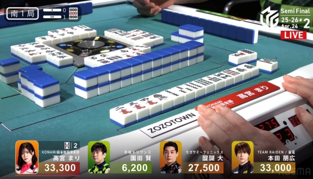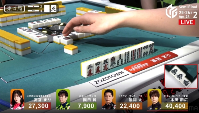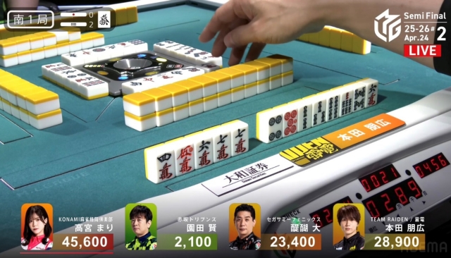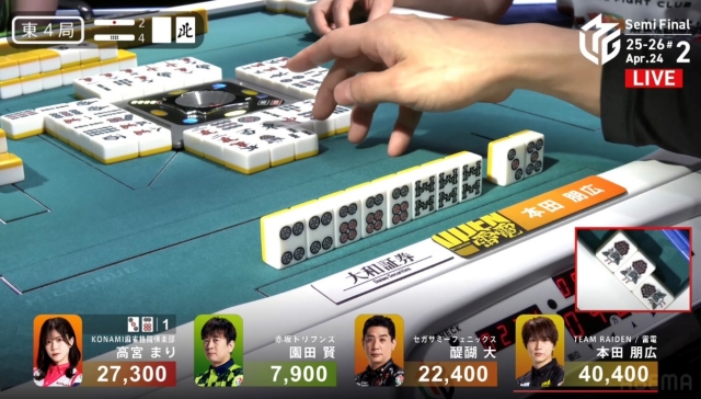 リーチをかけて、高宮に迫りたい点棒状況だったが、既に待ちは5枚切れ。
