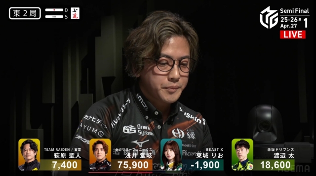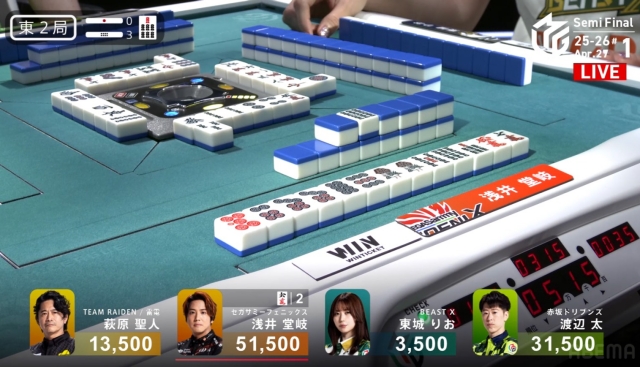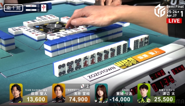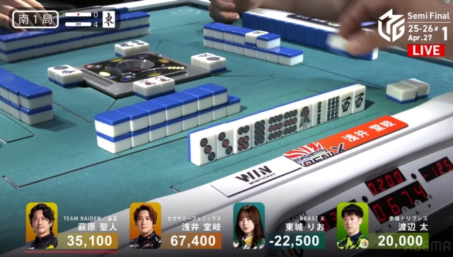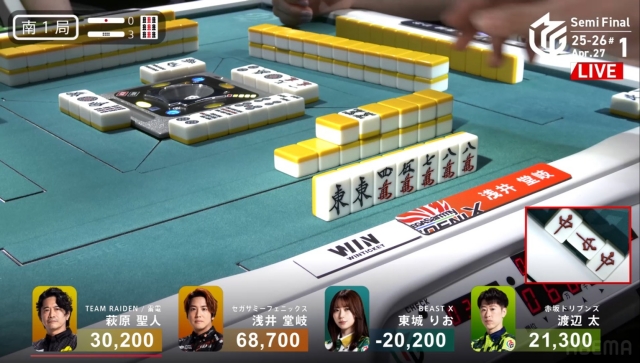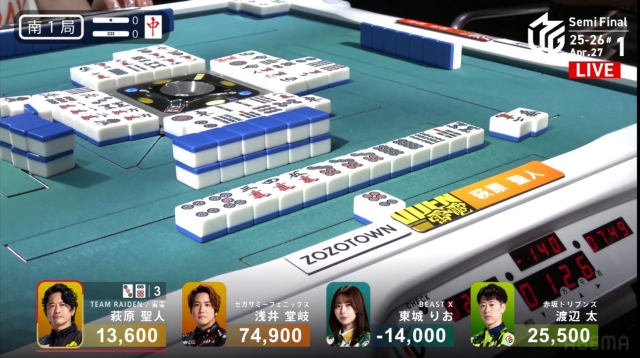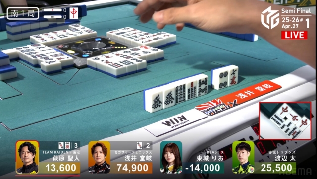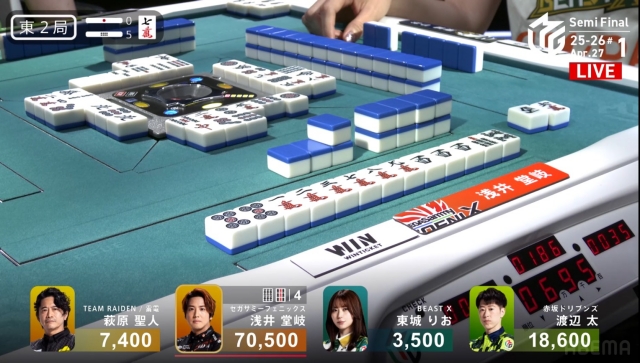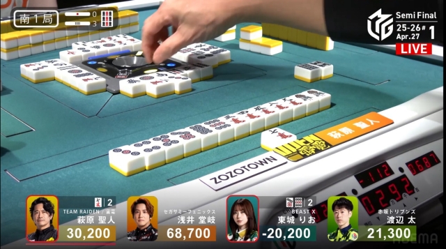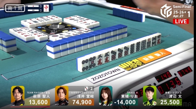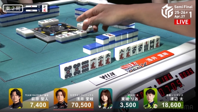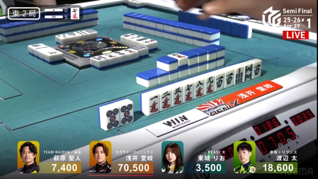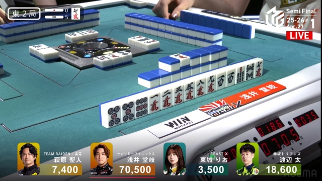 東場の親番でトップを大きく近づけることに成功。