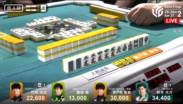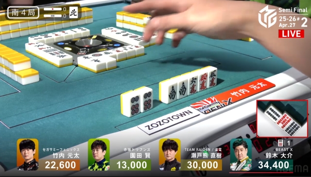 瀬戸熊はリーチツモで何か1翻つければトップ逆転だが……