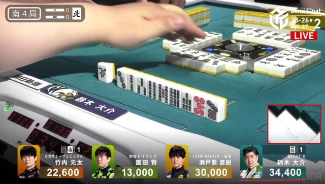 大介に連荘してもらいたい園田としては、元太の仕掛けと自分のリーチに挟まれた大介が開けてくれる可能性はあるのか。