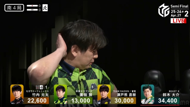 そしてもちろん大介に打ち上げるのが最悪のパターン。12000でもう一局となれば、一気にラス落ちまで見えてくる。