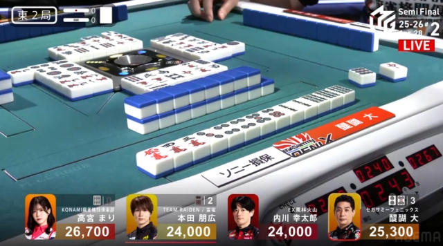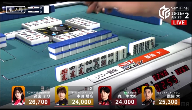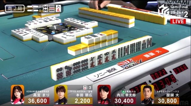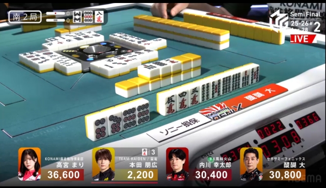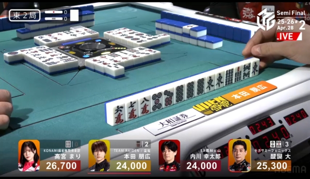 東家:高宮まり(KONAMI麻雀格闘倶楽部)