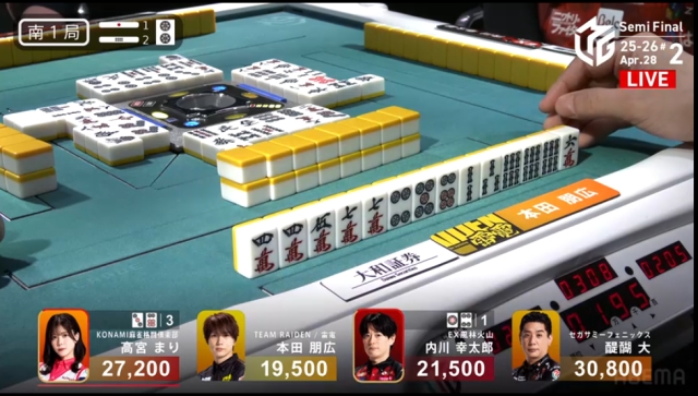 だが、この日の本田は当たり牌をよく掴み、苦しい展開に陥っていた。