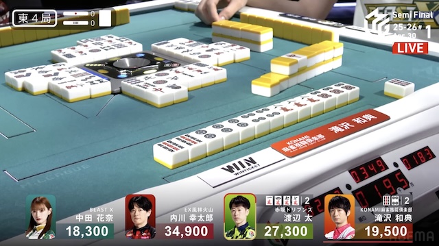 あの四暗刻で、あとは滝沢君がトップを獲ればほぼ決まりだと思っていたけど、とは言っても危なかったね。