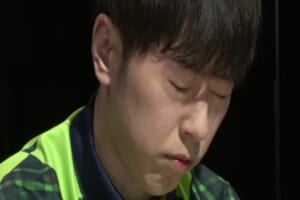 しかしすぐに小林にまくられ、迎えたオーラスで藤崎は、配牌から強引にソウズのホンイツを狙い