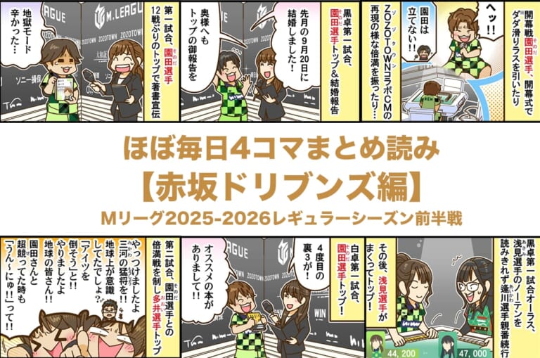 ほぼ毎日4コマまとめ読み【赤坂ドリブンズ編】Mリーグ2025-2026レギュラーシーズン前半戦