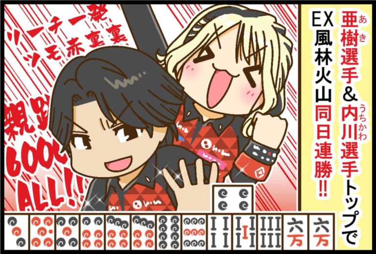 二階堂瑠美選手、 第2試合でトップ!! 風林火山PVは大盛況!! 【Mリーグほぼ毎日4コマ】 2024年2月8日 作・藤島じゅん/VOL.630 大和証券 Mリーグ 風林火山vsフェニックスvs雷電vsPirates