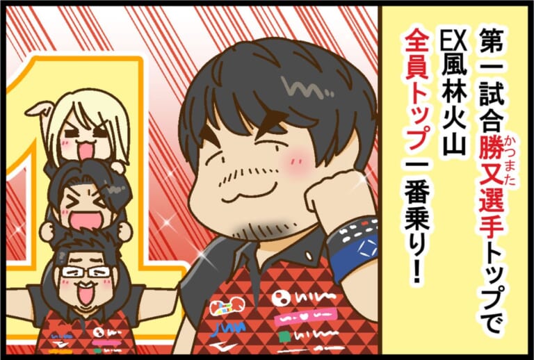 第1試合、鈴木大介選手が 1試合で2度倍満をアガって 待望の初トップ!! 【Mリーグほぼ毎日4コマ】 2023年10月2日 作・藤島じゅん/VOL.553 10/3(火) 15時から生配信 いま流行りのスイカゲーム! 極…