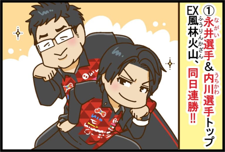 新加入の鈴木優選手とは どんな人物なのか…? 我々は「外面十段」の 真相に迫った…!? 【Mリーグほぼ毎日4コマ】 2022年10月4日 作・藤島じゅん/VOL.344 大和証券 Mリーグ ドリブンズvs風林火山vs麻雀…