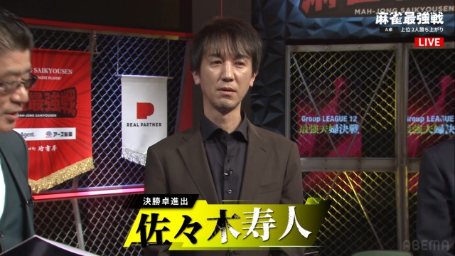 2015年度最強の打ち手を決める最後の闘い! A卓は 前田直哉(日本プロ麻雀連盟、第31期鳳凰位) 猿川真寿(日本プロ麻雀連盟、男子プロ風神編代表) 石井あや(最高位戦日本プロ麻雀協会、女流プロ桜の陣代表) 押川雲太朗(…
